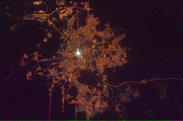 صور اليوم 24 – صورة للحرم المكي من ارتفاع عالي، البقعة المنيرة وسط عتمة الحياة.