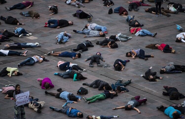 المكسيك، مشاركة الناس في عرض عشية ذكرى مجزرة الطلاب في عام 1968 في حي تلاتيلولكو، مكسيكو سيتي. وهي الذكرى السنوية الخمسين لليوم الذي فتحت فيه القوات المسلحة تحت قيادة الرئيس، جوستافو دياز أورداز، النار على المتظاهرين الطلاب، مخلفةً مئات القتلى.