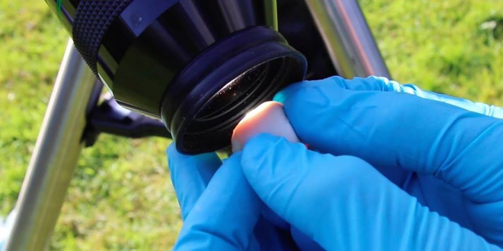 ما حدث هنا بالفيديو يمكن أن يحدث أيضاً معك إذا نظرت من خلال التلسكوب. بعد 20 ثانية فقط، تعرضت عين الخنزير إلى حفرة كبيرة وأضرار بالغة في الشبكية.