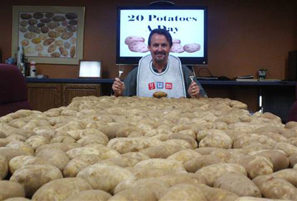 “كريس فويت” هو رئيس لجنة البطاطا في ولاية واشنطن! فعندما منعت وزارة الزراعة الأمريكية الناس من استخدام القسائم الغذائية للبطاطا البيضاء، احتج كريس على طريقته بأن رفض أن يتناول أي صنف عدا البطاطا لمدة 60 يوما، فهو يستهلك 20 حبة بطاطا يوميا. وتتميز البطاطا بأنها مصدر غني بالبروتينات والنشويات لكنها تفتقر الفيتامينات والكالسيوم، كما أنها تحتوي على نسب قليلة من السموم، لذلك ليس من الحكمة اعتماد البطاطا فقط في الحميات الغذائية.