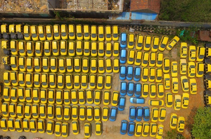 الصين، سيارات أجرة متوقِّفة في مرآب بمقاطعة نانجينغ.
