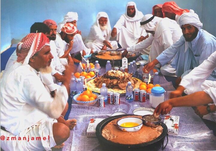 صور قديمة لزمن جميل – وليمة لذيذة في أحد بيوت الباحة قبل حوالي 30 سنة.