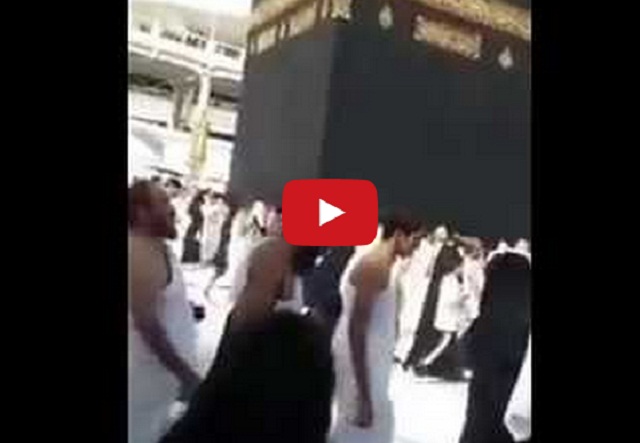 رجل معتمر أثناء طوافه حول الكعبة المشرفة في المسجد الحرام يُلِّح على ربه بالدعاء بأنه يرزقه فتاة “مزيونة” للزواج ويطلب ممن برفقته أن تؤمِّن خلفه بالدعاء كما يظهر في فيديو صوره بنفسه!