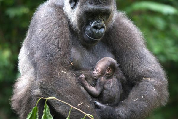 صور طازجة – غوريلا حديث الولادة عمره أسبوع مع أمه في حديقة موطن الغوريلا في أوهايو.
