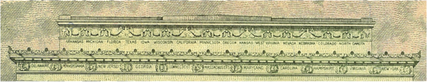 ويوجد على النصب التذكاري لأبراهام لينكولن الذي يوجد على ظهر ورقة 5 دولار أسماء الولايات منقوشة عليه.