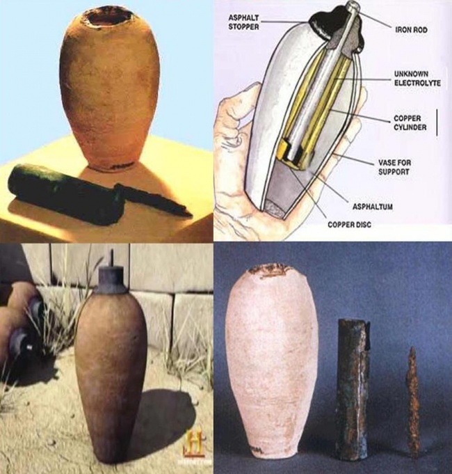 في كل فترة تُفاجئ حضارة ما بين النهرين العالم باكتشاف غريب له فائدة كبيرة. ففي فترة 1930s، تم اكتشاف قطعة أثرية غامضة خلال الحفر في منطقة ليست بعيدة عن بغداد. الجرة التي عُثر عليها سُميَّت بطارية بغداد وهي بطول 13 سم، مع قضيب حديدي خارج من فمها، وتم العثور على أسطوانية نحاسية بداخلها وبداخل الأسطوانة قضيب آخر.