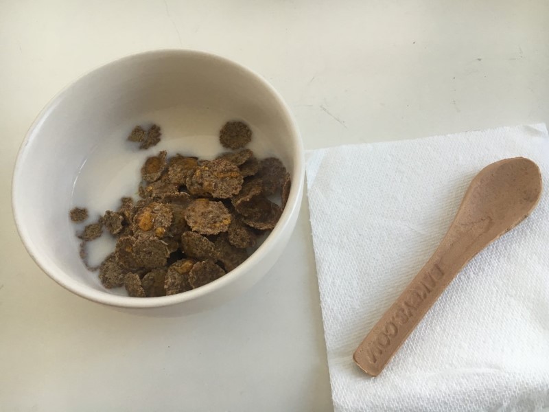 ثم جربت الملعقة مع وجبة الإفطار المكونة من الحبوب والحليب، وأيضاً وجدت الطعم لذيذ.