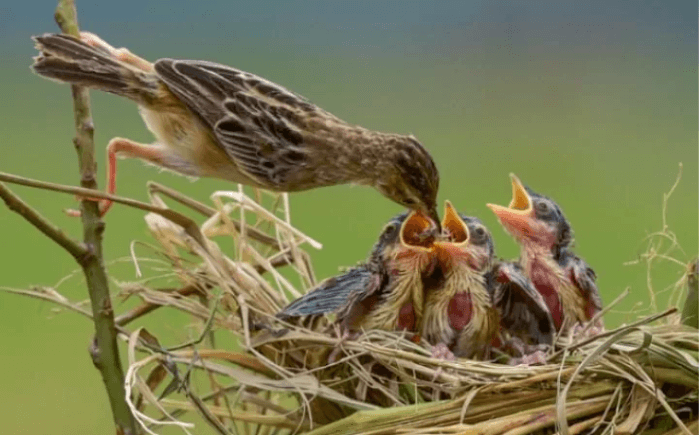 إندونيسيا، طائر يُطعم صغاره في العش في جزيرة سومطرة.