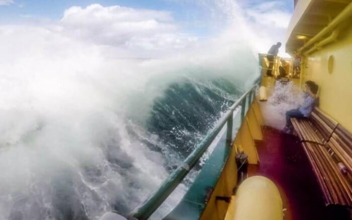 أستراليا، الأمواج العاتية ترتطم بالعبارة “مانلي” خلال إبحارها في سيدني.