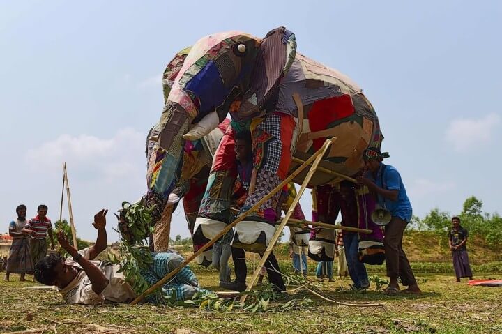 بنجلاديش، لاجئو الروهينجيا يصنعون نموذجًا لفيل للتوعية بخطر الحيوانات التي أدت إلى مقتل 12 شخصًا بالقرب من مخيم كوتوبالونج للاجئين.