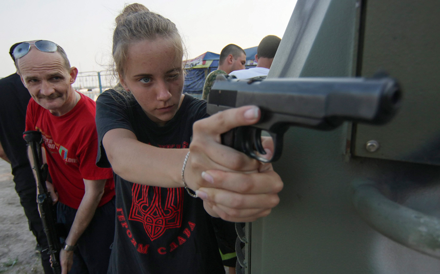 09 يوليو 2015 – أوكرانيا، جنود أوكرانيون يقومون بتدريب متطوعين في جنوب شرق المدينة الأوكرانية ماريوبول.