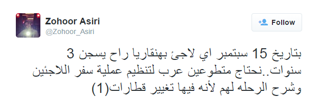 وقد ألقى كثيرون اللوم على الجالية العربية والإسلامية لعدم تقديمها المساعدة والدعم لإخوانهم. لكن هناك قصصًا تؤكد غير ذلك، ومنها قصة مبتعثة سعودية قدمت العون لإخوانها السوريين الذين وصلوا المجر “هنغاريا”. وقد سلّط موقع “بريت بارت لندن” الضوء على المبتعثة “زهور عسيري” وعملها في خدمة اللاجئين، والذي علق بالقول أن وجودها أصبح أمرًا مألوفًا في محطة قطارات كيليتي في المجر.