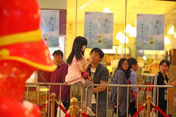 هذا ما حصل مع رجل صينيحيث أنه منذ شبابه كان يقنع نفسه بأنه ليس بحاجة للزواج أو لإنجاب أطفال، لم يكن يعلم أن حياته ستتغير للهاوية حتى أصيب بمرض التوحد، وفي أحد الأيام عندما كان يتصفح الإنترنت على المواقع التجارية وجد دمية بحجم الإنسان، فطلبها ولحظة وصولها أحبها بشدة بالرغم من أنها دمية! وبدأت هذه الدمية تغير حياته، حيث كان يعاملها كما لو أنها إبنته أعطاها إسم شياو يموت بمعني “الفراشة الصغيرة”، سنعرض عليكم بعض الصور له مع الدمية وهو يأخذها إلى كل مكان.