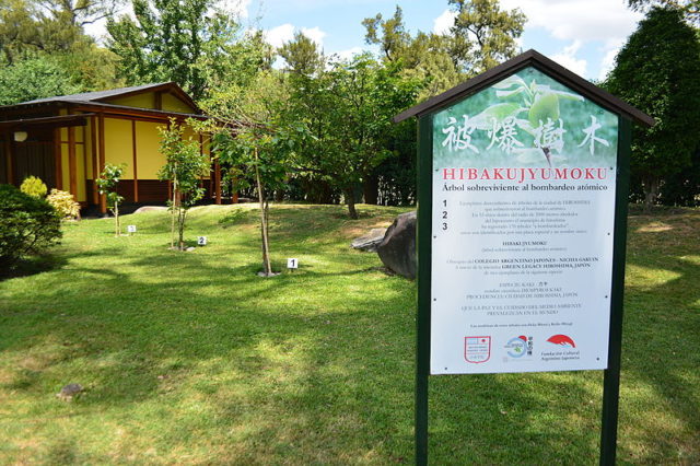 مع اقتراب انتهاء الحرب العالمية الثانية في عام 1945م تم إسقاط قنبلة ذرية على هيروشيما في 6 أغسطس قضت على 90% من سكان المدينة، أي حوالي 100 ألف شخص، وفي 9 أغسطس أسقطت قنبلة ثانية على ناجازاكي، وقد أحدثت القنابل دمارًا كبيرًا ليس فقط على البشر والمباني، وإنما الأشجار أيضًا، ولكن الغريب نمو بعض الأشجار من جديد بعد أن تدمرت واحترقت.