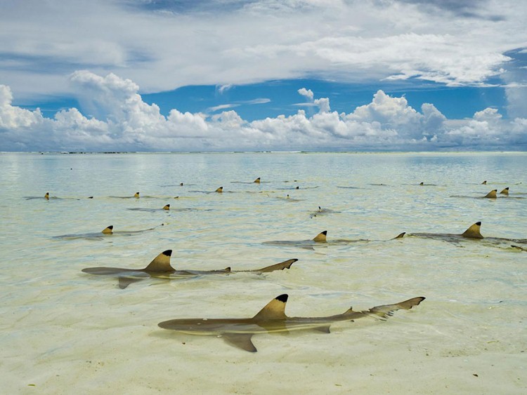 قروش الشعب المرجانية تسبح في المياه الدافئة في شواطئ سيشيل.