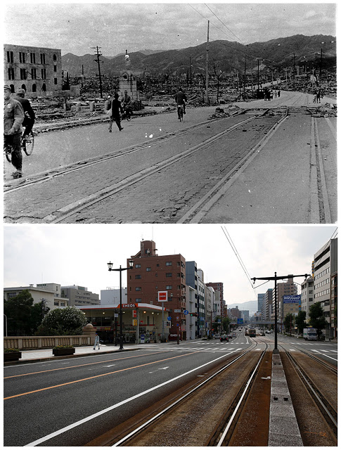 في 6 أغسطس 1945، أسقطت الولايات المتحدة الأمريكية القنبلة الذرية على هيروشيما، مما أسفر عن مقتل حوالي 140,000 شخص بحلول نهاية العام. بعد ثلاثة أيام، أُسقطت القنبلة الذرية الثانية على مدينة ناجازاكي. هنا مجموعة من الصور التي تعرض بعض المواقع من هيروشيما وناجازاكي بين الماضي والحاضر.