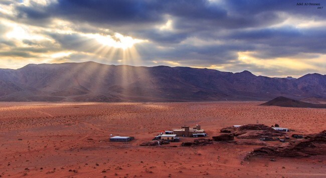 عدسة تبوك – مشهد لاختراق أشعة الشمس للغيوم في سماء قرية علقان في منطقة تبوك. بعدسة: عادل العمراني.