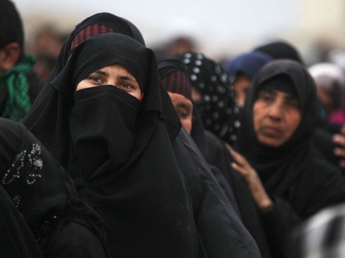 العراق، نساء نازحات من مدينة الموصل ينتظرن الحصول على مساعدات في مخيم حمام العليل جنوبي المدينة المحاصرة.