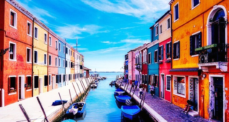 صور سياحية – نظرة على جزيرة بورانو الإيطالية، وهي قرية صيد قديمة تبدو كأنها لوحة فنية بسبب ألوان بيوتها الزاهية التي تجتذب السياح.