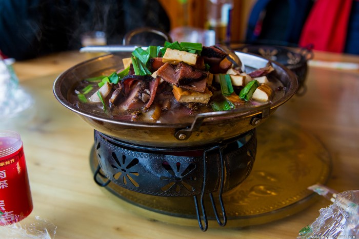 حساء صيني يكفي لثلاثة أشخاص، وكمان يظهر في الصورة فإنه يحتوي على عناص مغذية ومفيدة مثل اللحوم والخضروات والمعكرونة وغيرها من التوابل والبهارات.
