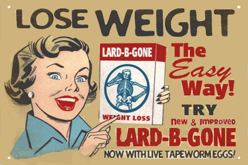 على الأرجح فإن هذه الحمية تعتبر من أخطر الأنواع، إذ إنها يتم حقن جسم الشخص بالدودة الشريطية، والتي تبقى في المعدة وتقوم باستهلاك كل شيء يتناوله الشخص، مما يسمح له بانقاص وزنه.