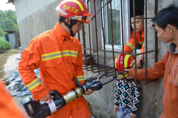 صور طازجة – رجال الإنقاذ يحاولون تخليص طفل علق رأسه في نافذة بالصين.