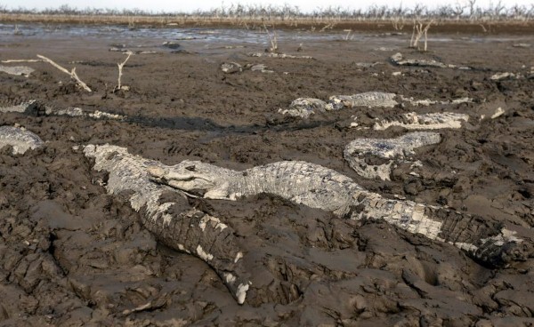 صور طازجة – تماسيح عالقة بالطين في نهر ضربه الجفاف بين باراغواي والأرجنتين.