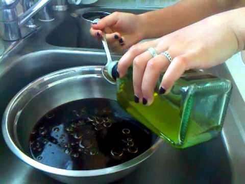 يمكن مزج كوب من القهوة بعد أن تبرد، بكوبين من شامبو البلسم، وإضافة ملعقة كاملة من القهوة المطحونة لفعالية أكثر. ويجب ترك الخليط لمدة ساعة قبل شطفه. على الرغم من أن الصبغة قد تكون خفيفة، لكن يمكن تكرار هذه العملية، لشعر أغنى باللون.