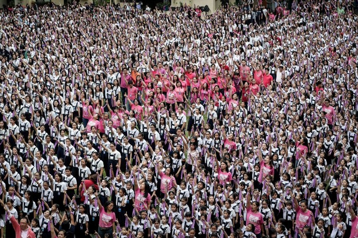 الفلبين، طالبات مدرسة يؤدين رقصة ضمن حملة مطالبة بوضع حد للعنف ضد المرأة.