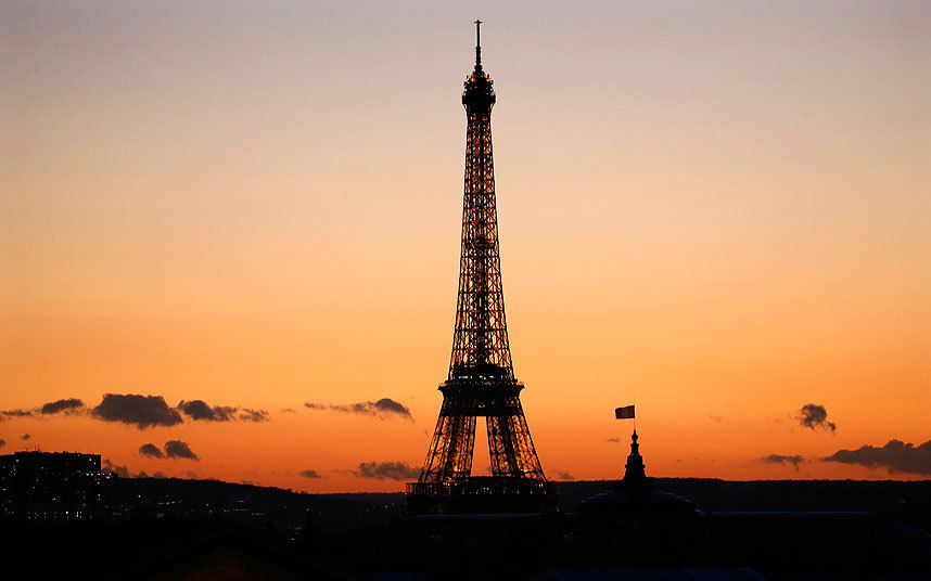 16 يناير 2016 – فرنسا، برج إيفل لحظة غروب الشمس في يوم شتوي في باريس.