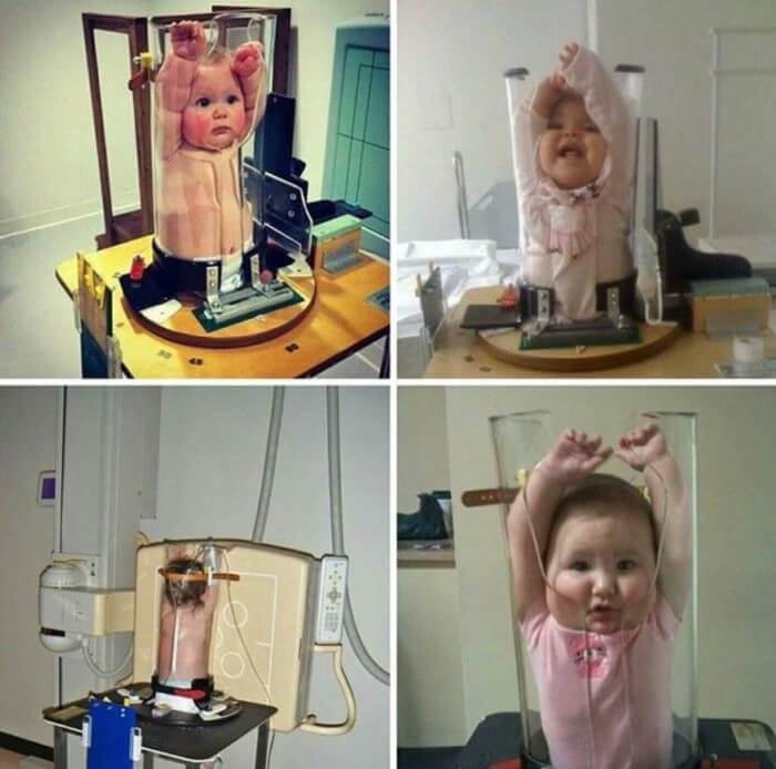 الوثائقية – هكذا يتم تصوير الأطفال بالأشعة السينيه من خلال وضعهم في أنبوب لمنع حركتهم واسمه “pigg-o-stat”.
