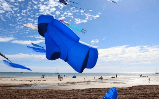 أستراليا، مختلف أشكال وألوان الطائرات الورقة تُحلِّق في سماء شاطئ “سيمافور” خلال المهرجان الدولي للطائرات الورقية في أديليد.