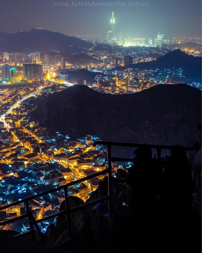 محمد الهذلي – إطلالة رائعة من قمّة جبل النور على مدينة مكة المكرمة وكما يبدو برج الساعة.