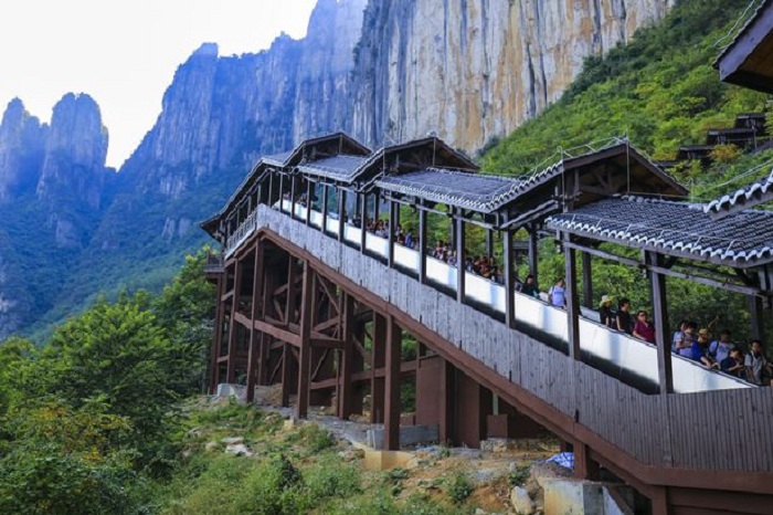 تم إنشاء هذا الدرج باستخدام مواد مستدامة بيئياً من بينها الأخشاب وسقف من القرميد الرمادي اللون، ويمكن للزائر تجربته مقابل 20 يواناً (حوالي 3 دولارات).