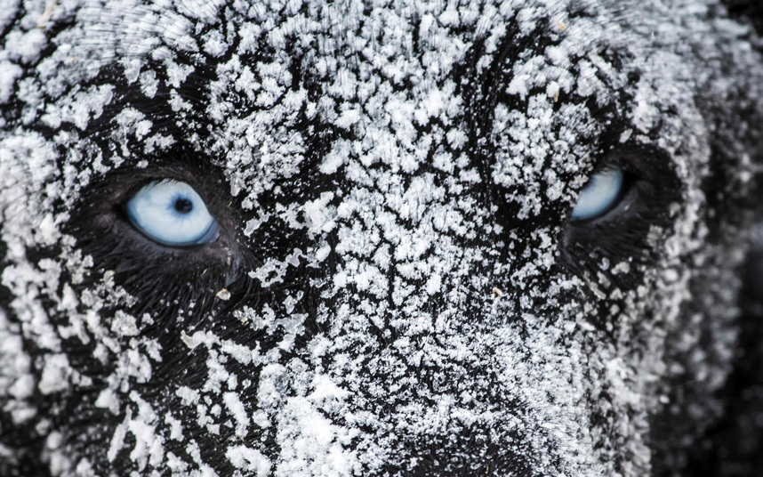 18 يناير 2016 – فرنسا، كلب تزلج وجهه مغطى بالجليد بعد قضاء ليلة في الهواء الطلق على جبال الألب الفرنسية.