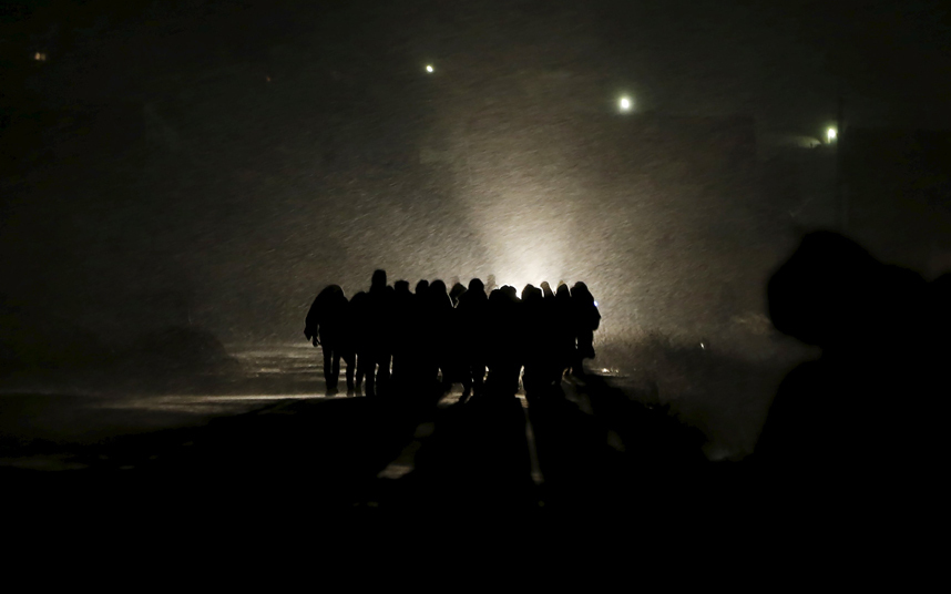 18 يناير 2016 – صربيا، مهاجرون يدخلون الحدود من مقدونيا.