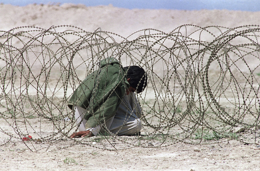 أحد أفراد عصابة عراقية تم إلقاء القبض عليه من قبل الجيش الأمريكي على بعد 25 ميلاً من البصرة، بتاريخ 28 مارس 1991م.