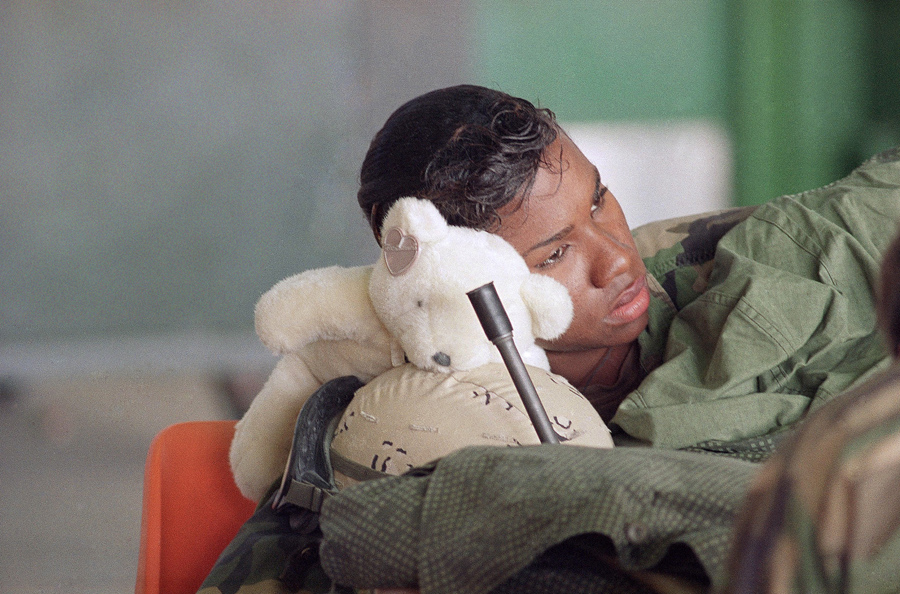 ممرضة أمريكية في وقت راحة قبل أن يتم نقلها لتشكيل مستشفى ميداني في الصحراء.