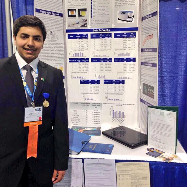 بحث الطالب عبدالجبار الحمود في علوم النبات ضمن أفضل 3 أبحاث على مستوى انتل ايسف