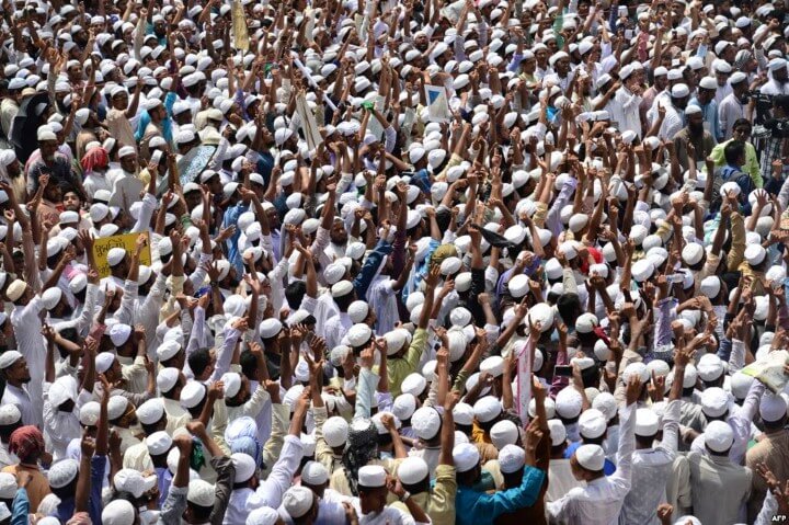 بنجلاديش، مسلمون يتظاهرون أمام سفارة ميانمار ضد أعمال التطهير العرقي بحق المسلمين الروهينجيا في إقليم أراكان، في العاصمة البنجلاديشية دكا.