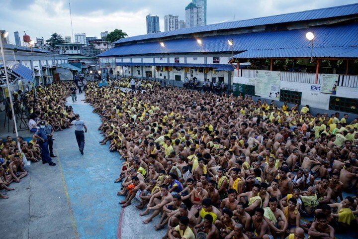 الفلبين، مئات السجناء يحتشدون خارج زنزاناتهم خلال عملية تفتيش في سجن بمدينة مانيلا.
