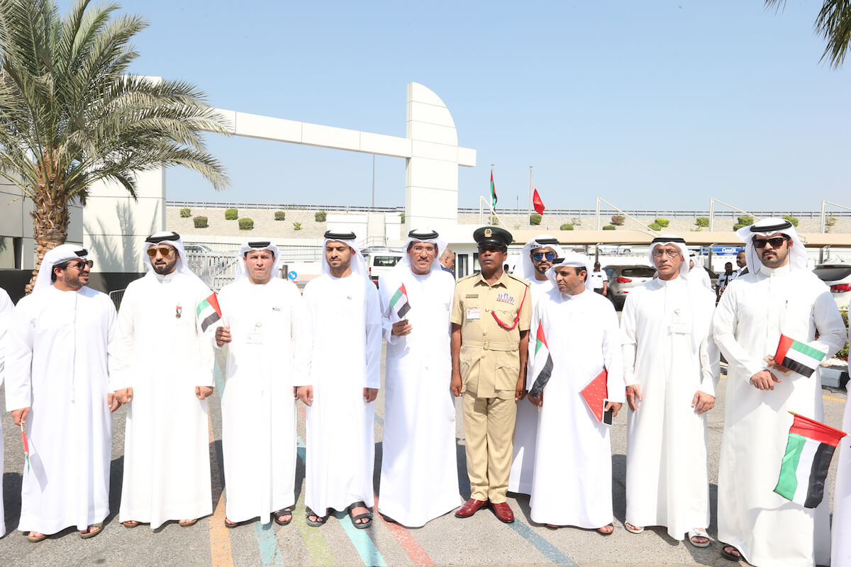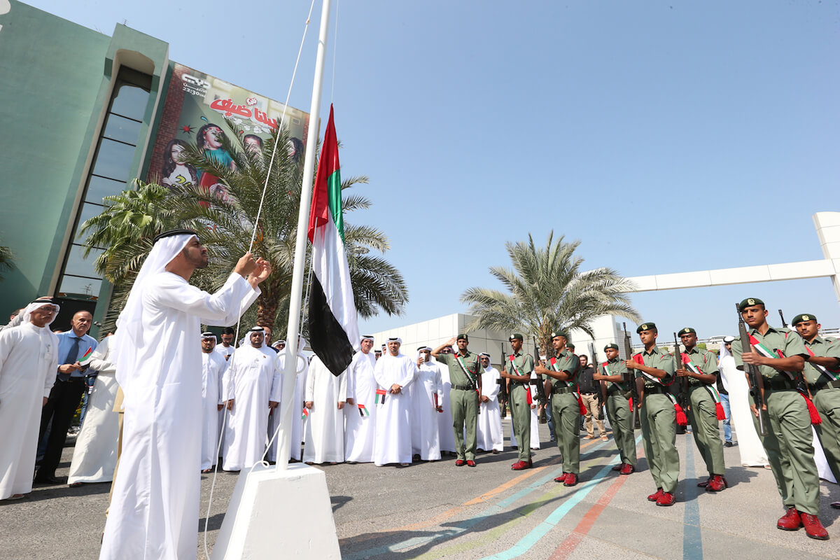 وقام برفع العلم فيصل عبد الله المدير التنفيذي لقطاع الخدمات المشتركة بمؤسسة دبي للإعلام، بحضور ومشاركة أفراد الفصيل رقم 7 ومدربهم يونس أحمد صالح من شرطة دبي، احتفالاً بـ يوم العلم الذي يصادف الثالث من شهر نوفمبر، ذكرى تولي صاحب السمو الشيخ خليفة بن زايد آل نهيان رئاسة دولة الإمارات العربية المتحدة.