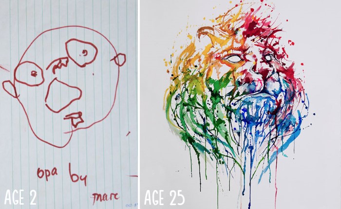 كثيراً ما نشاهد اللوحات الفنية الثلاثية الأبعاد الاحترافية سواء لفنانين محليين أو حتى عالميين، ولكننا ربما لم نشاهد مراحل تطور الرسامين قبل أن يصلوا إلى الاحترافية، إذ أنهم مروا بأوقات صعبة وطويلة حتى استطاعوا أن يصلوا إلى أعلى الدرجات في مجال الرسم. وهنا قائمة من الصور التي تعرض الفرق الكبير بين لوحات الفنانين قبل وبعد الوصول إلى الكمال في الرسم.