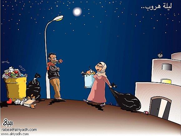 هنا مجموعة من رسومات الكاريكاتير التي عرضت بعض من مظاهر هروب الخادمات من المنازل، بالإضافة إلى تأثير الأسواق السوداء على هروب الخادمات وإغرائهم بالعمل بأجور أعلى من السابق في أماكن أخرى. وتزداد هذه الظاهرة قبيل شهر رمضان المبارك، وهذا الأمر الذي يسبب إزعاجاً كبيراً للأسرة السعودية.