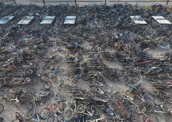 الصين، مئات الدراجات المهجورة في جامعة تشنغتشو.