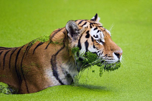 صور اليوم 24 – صور مذهلة لنمر سيبيري يسبح في بركة مغطاة بالطحالب تماما في حديقة حيوانات “كوبنهاجن” في الدنمارك.