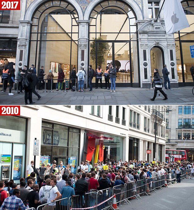 صور حول العالم – إقبال صادم على متاجر أبل في يوم إطلاق هاتف أيفون 8 الجديد! هذه الصور من لندن.