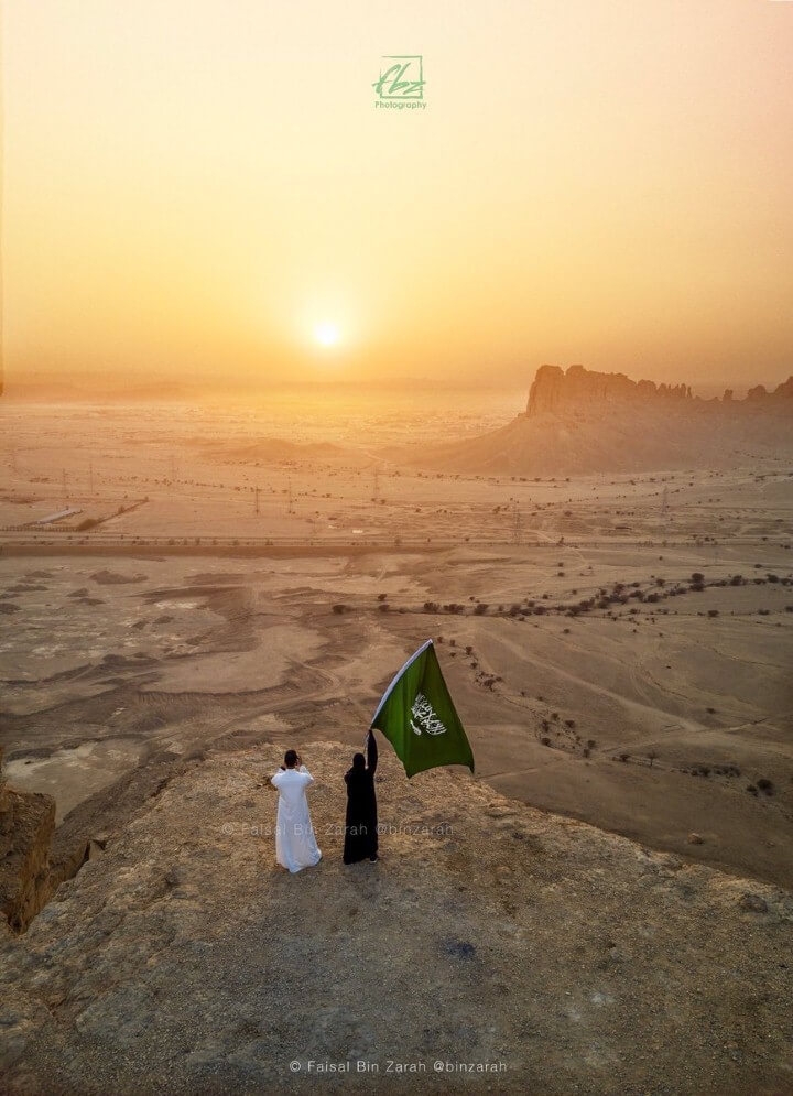هيئة السياحة والتراث – احتفالًا باليوم الوطني السعودي، رفع العلم الوطني فوق أعالي جبال طويق. عدسة المُبدع: فيصل بن زرعة.