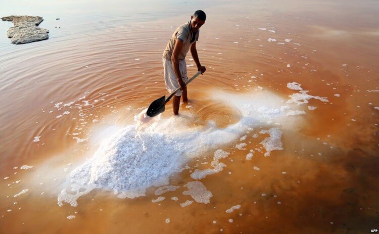العراق، رجل يجمع الملح من المياه المالحة في مدينة الديوانية، جنوب العاصمة بغداد.