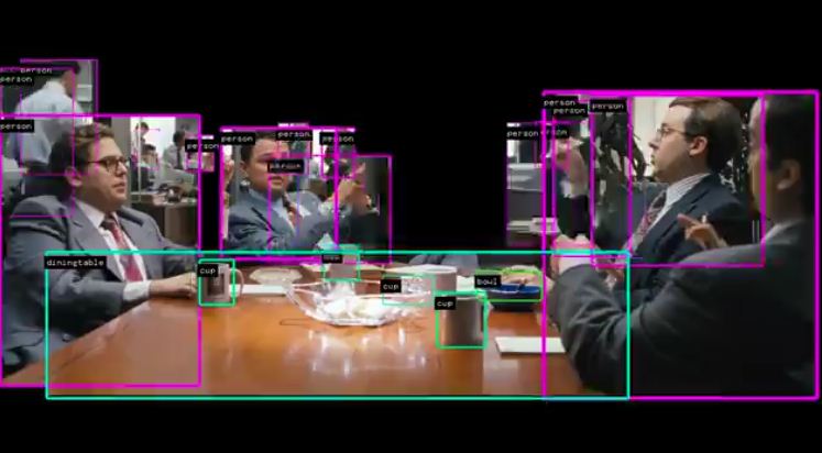 على سبيل المثال، في الصورة التالية استطاع الكمبيوتر تحديد تسعة أشخاص، وربطتي عنق، وطاولتي طعام، وكرسي، وهكذا دواليك في اللقطات اللاحقة.